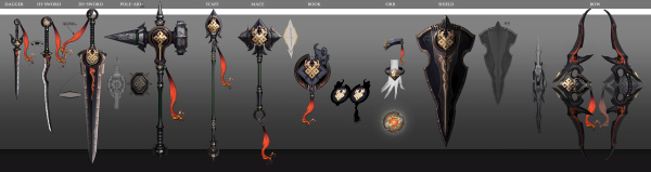 工作提交:故事设计完成后会得到一个剧本,其中包含了许多故事发展线,人物介绍,战役介绍;概念设计完成后,会得到一些概念线稿,如下:
