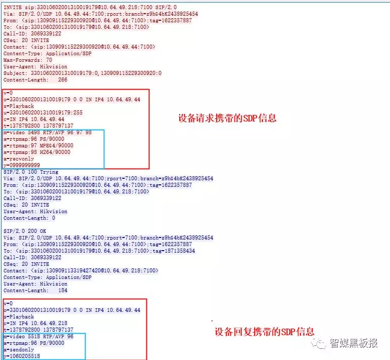 国标协议也是基于SIP协议开发的,所以这里的SDP协议是在给前端设备下发INVITE信令的回复中带上来的,这里的SDP主要是为了不同的厂家,使用 GB对接的时候,上级要能正常看下级推送过来的摄像头的视频,回放,以及球机控制等等的功能。