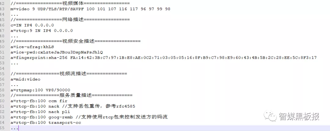 如果拓展,还可以描述会话的安全方案信息、服务质量信息等,其中WebRTC就在SDP的基础上进行了继续拓展,可以参考: