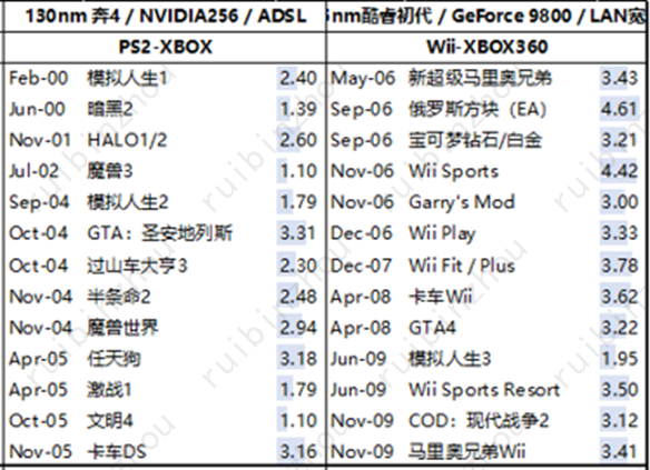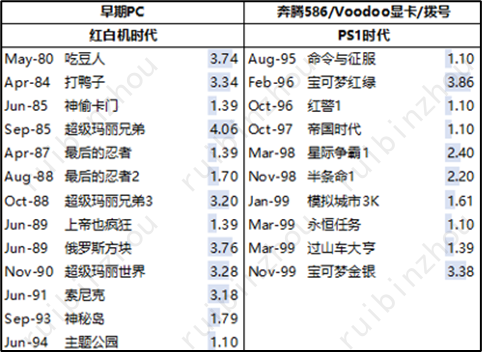 在表外的还有更早的一批雅达利甚至实验室时代的电子游戏,我们会合并分析。