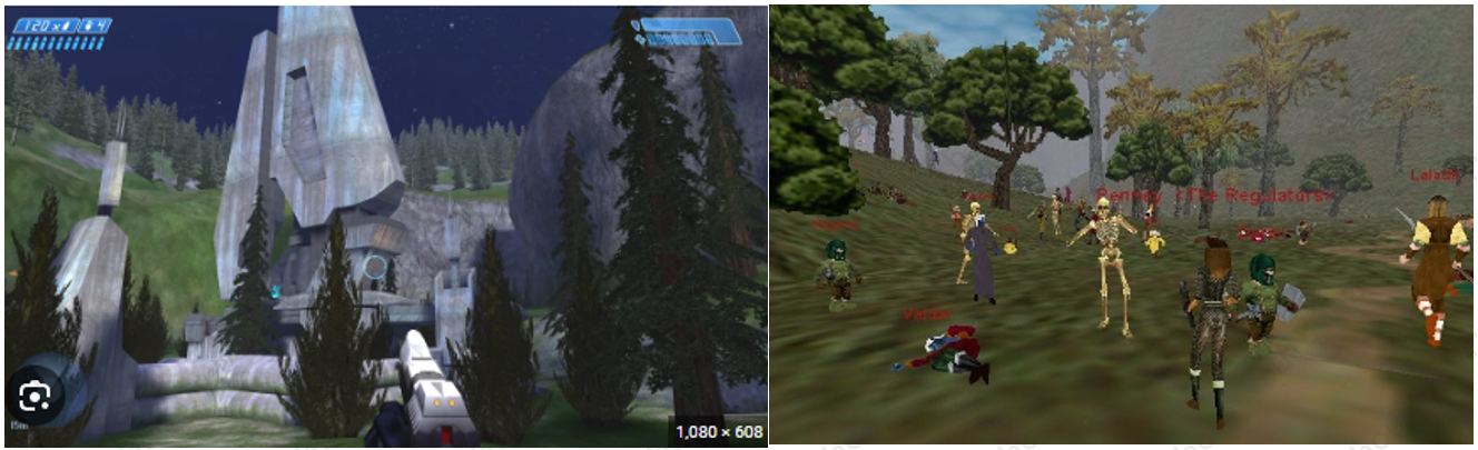互联网能把雷达站联系起来,当然也能把游戏者联系起来。自从互联网时代开始,电子游戏的博弈场景不再限于线下的游戏厅;所有接入互联网的人都可以参与。90年代的《红警》、《帝国时代》、《雷神之锤》等游戏都有着不错的联机体验。上表中的《Everquest》,则是最早一批网络MMO。