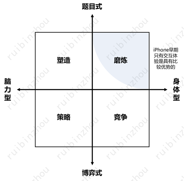 解决问题的两个方面很容易理解:身体型和脑力型——简单来说就是打球和下棋的区别、音游和4X之间的区别。