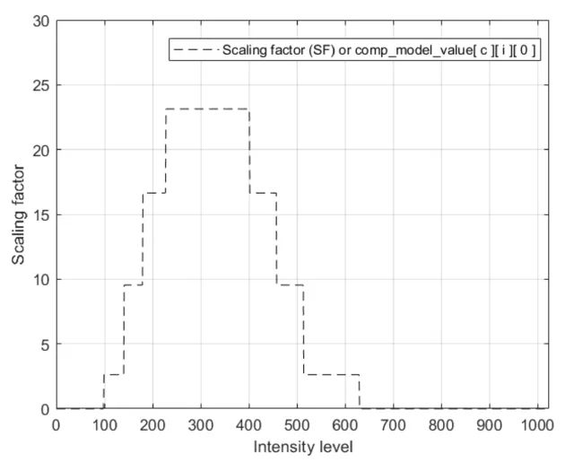 comp_model_value[c][i][0],分别为每个颜色分量 c 和强度间隔间隔i 定义。给定的表示导致分段常数缩放函数(又名逐步缩放函数)。
