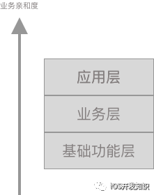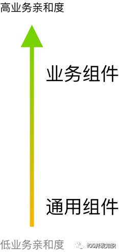 分层是一个非常自然的选择。当组件数量增多的时候,我们会习惯将具有相同特性的组件进行归类。比如我们会将一些像网络库、Logger库、外部引入的一些 UI 组件放到一个层次;会将我们的类似于社交业务的组件、登录页面所在的组件等放到一个层次。仔细去看,我们把他们聚类在一个层次的重要原因是他们与业务的亲和度,亲和度这个指标主要是说组件内部含有业务逻辑的浓度。我们这里所说的业务,就是我们需要构建的真实的业务场景。比如登录吧,直接写用户登录的那部分代码,我们可以认为是业务亲和度非常高。而像网络库这样主要是支撑我们去做完用户登录的代码,我们会认为他的业务亲和度较低。